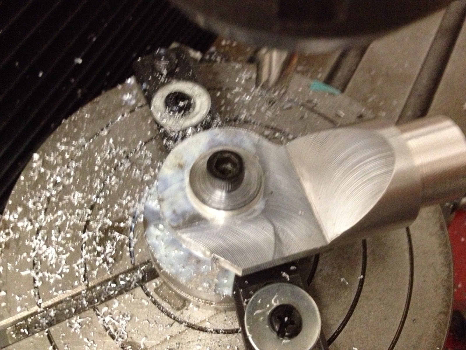 把前蓋的弧度銑出來,再把前蓋跟龍頭鎖在一起,銑出上下的凹槽